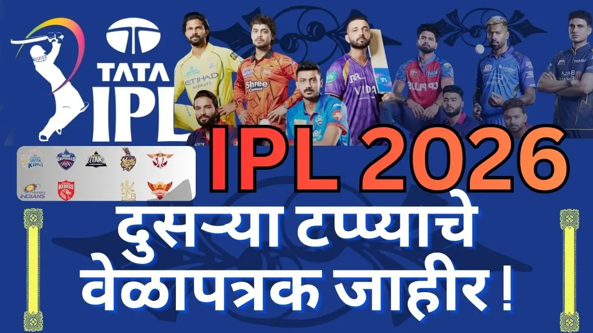 Board of Control for Cricket in India (BCCI) ने 26 मार्च 2026 रोजी TATA IPL 2026 च्या दुसऱ्या टप्प्याचे अधिकृत…