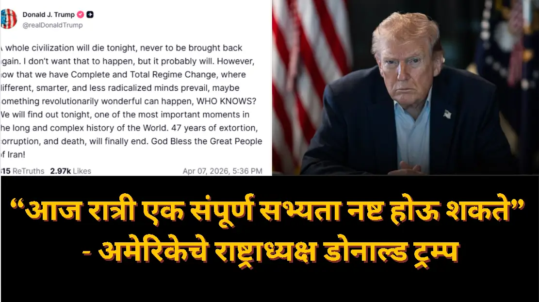 Iran War Update : “आज रात्री एक संपूर्ण सभ्यता नष्ट होऊ शकते” – अमेरिकेचे राष्ट्राध्यक्ष डोनाल्ड ट्रम्प (Donald Trump) यांची इराणला धमकी !