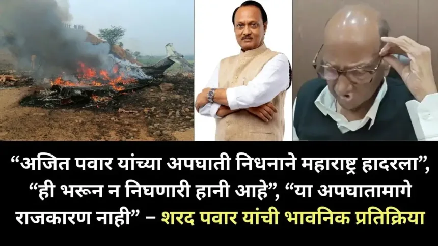 शरद पवार (Sharad Pawar) यांच्या भावनिक प्रतिक्रियेतून या घटनेची तीव्रता स्पष्टपणे जाणवते. वैयक्तिक नातेसंबंध, राजकीय सहवास आणि दीर्घ सार्वजनिक जीवन यामुळे हा धक्का त्यांच्यासाठी अत्यंत वेदनादायक असल्याचे दिसून येते.