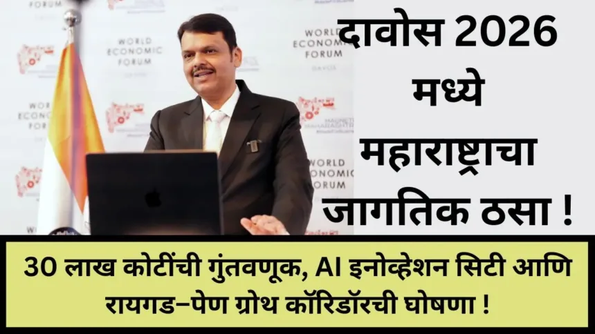 (Davos 2026 ) दावोस 2026 मध्ये झालेल्या गुंतवणूक करारांमधून महाराष्ट्राच्या भविष्यातील विकासाचा स्पष्ट आराखडा समोर आला आहे. या गुंतवणुकीचा केंद्रबिंदू कृत्रिम बुद्धिमत्ता (AI), डेटा सेंटर्स, ग्लोबल कॅपॅबिलिटी सेंटर्स (GCCs), सेमीकंडक्टर उत्पादन, फिनटेक, इलेक्ट्रिक व्हेईकल (EV) आणि डिजिटल पायाभूत सुविधा अशी अत्याधुनिक व भविष्योन्मुख क्षेत्रे आहेत. AI आणि डेटा सेंटर्समुळे महाराष्ट्र डिजिटल अर्थव्यवस्थेचे प्रमुख केंद्र म्हणून उदयास येणार असून, सेमीकंडक्टर उद्योगामुळे तंत्रज्ञान क्षेत्रातील आत्मनिर्भरतेला मोठे बळ मिळणार आहे. फिनटेक व GCCs च्या माध्यमातून जागतिक कंपन्यांची मुख्य ऑपरेशनल केंद्रे राज्यात स्थापन होणार असून, EV क्षेत्रातील गुंतवणूक हरित ऊर्जा आणि पर्यावरणपूरक वाहतूक व्यवस्थेला चालना देणार आहे. तसेच डिजिटल पायाभूत सुविधांमुळे स्मार्ट शहरे, जलद कनेक्टिव्हिटी आणि ई-गव्हर्नन्स अधिक प्रभावी होणार आहे. या सर्व गुंतवणुकीमुळे थेट व अप्रत्यक्ष स्वरूपात लाखो नव्या रोजगारनिर्मितीचा मार्ग मोकळा होणार असल्याचे सरकारने स्पष्ट केले असून, महाराष्ट्राची अर्थव्यवस्था पुढील दशकात नव्या उंचीवर पोहोचेल, असा विश्वास व्यक्त केला जात आहे.