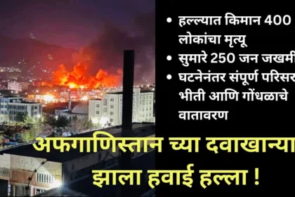 Afghanistan ची राजधानी Kabul येथे पाकिस्तानने केलेल्या कथित हवाई हल्ल्यात किमान ४०० जण ठार झाले असून, सुमारे २५० जण जखमी झाले आहेत !