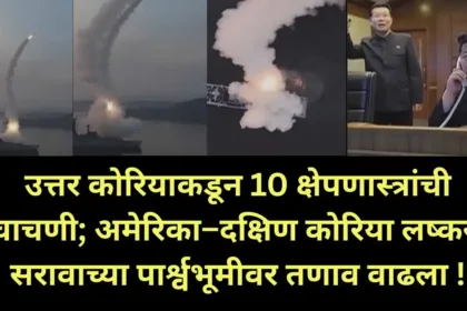 North Korea – उत्तर कोरियाकडून 10 क्षेपणास्त्रांची चाचणी; अमेरिका–दक्षिण कोरिया लष्करी सरावाच्या पार्श्वभूमीवर तणाव वाढला !