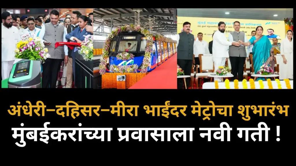 नवीन Metro च्या रुपात मुंबई महानगर प्रदेशातील (MMR) वाहतूक व्यवस्थेला बळकटी देणारा महत्त्वाचा टप्पा आज पार पडला. महाराष्ट्राचे मुख्यमंत्री Devendra Fadnavis, उपमुख्यमंत्री Eknath Shinde आणि उपमुख्यमंत्री Sunetra Ajit Pawar यांच्या हस्ते मंगळवारी मेट्रो लाइन 9 (दहिसर–मीरा-भाईंदर) आणि (Metro) मेट्रो लाइन 2B (अंधेरी–मानखुर्द) यांचे उद्घाटन करण्यात आले. उद्घाटनानंतर दोन्ही नेत्यांनी मेट्रोमधून प्रवास करत या प्रकल्पाचा प्रत्यक्ष अनुभव घेतला. या दोन्ही मेट्रो लाईन्स 8 एप्रिलपासून प्रवाशांसाठी खुल्या करण्यात येणार आहेत.