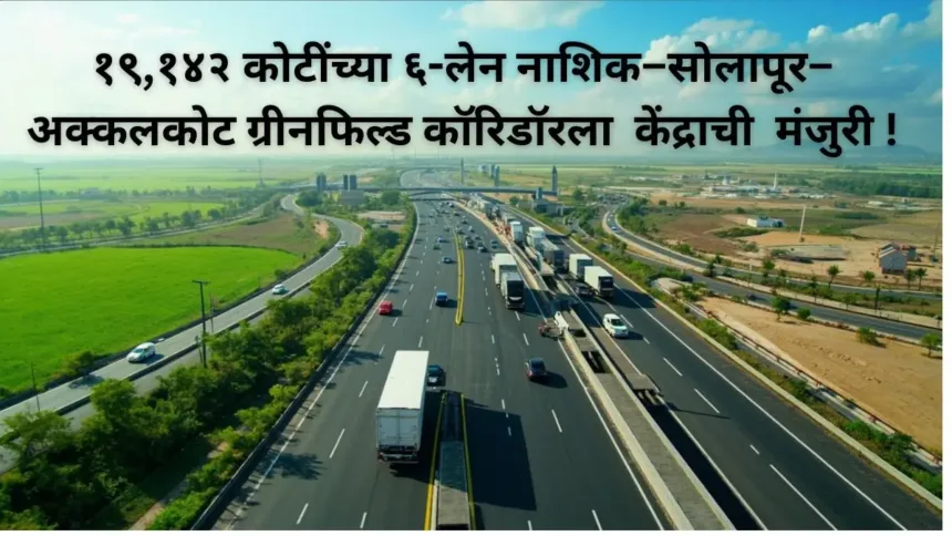 पंतप्रधान नरेंद्र मोदी यांच्या अध्यक्षतेखालील आर्थिक विषयांवरील मंत्रिमंडळ समितीने महाराष्ट्रातील नाशिक–सोलापूर–अक्कलकोट (Akkalkot) या सहा-लेन प्रवेश नियंत्रित ग्रीनफिल्ड महामार्गाच्या (कॉरिडॉर) बांधकामास मंजुरी दिली आहे. हा प्रकल्प बीओटी (टोल) पद्धतीवर राबविण्यात येणार असून, या महामार्गाची एकूण लांबी ३७४ किलोमीटर तर एकूण भांडवली खर्च ₹१९,१४२ कोटी इतका आहे. या महामार्ग प्रकल्पामुळे नाशिक (Nashik), अहिल्यानगर(Ahilyanagar), धाराशिव (Dharashiv) आणि सोलापूर (Solapur) या जिल्ह्यांना थेट जोडणी मिळणार असून, राज्यातील औद्योगिक आणि व्यापारी वाहतुकीला नवीन गती मिळणार आहे. हा प्रकल्प पंतप्रधान गतिशक्ती राष्ट्रीय मास्टर प्लॅन अंतर्गत एकात्मिक वाहतूक पायाभूत सुविधांच्या विकासासाठी मोठे पाऊल ठरणार आहे.