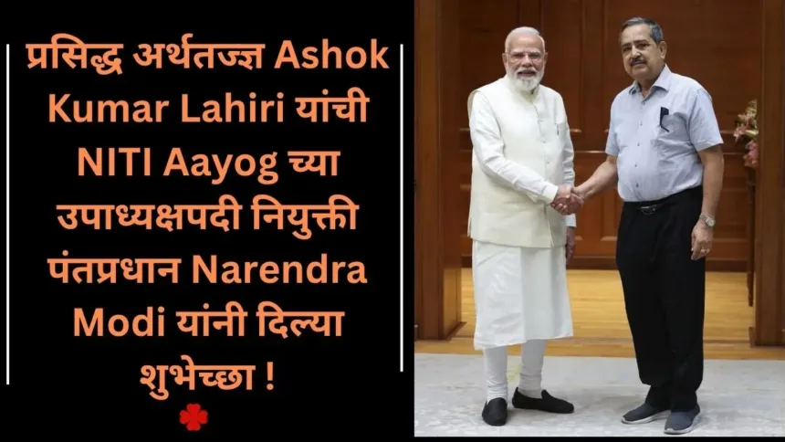 पंतप्रधान Narendra Modi यांनी नुकतेच प्रसिद्ध अर्थतज्ज्ञ Ashok Kumar Lahiri यांची NITI Aayog च्या उपाध्यक्षपदी झालेल्या नियुक्तीबद्दल अभिनंदन केले आहे. सोशल मीडियावरून दिलेल्या संदेशात पंतप्रधानांनी लाहिरी यांच्या अनुभवाचे कौतुक करत भारताच्या विकासप्रवासात त्यांच्या योगदानाबद्दल विश्वास व्यक्त केला. पंतप्रधान मोदी यांनी आपल्या संदेशात नमूद केले की, अर्थशास्त्र आणि सार्वजनिक धोरण (Public Policy) या क्षेत्रातील अशोक कुमार लाहिरी यांचा दीर्घ अनुभव भारतातील सुधारणा प्रक्रियेला अधिक बळ देईल. त्यांनी स्पष्ट केले की, देश ‘विकसित भारत’ (Viksit Bharat) या ध्येयाकडे वाटचाल करत असताना सक्षम आणि दूरदृष्टी असलेले नेतृत्व अत्यंत महत्त्वाचे आहे.
