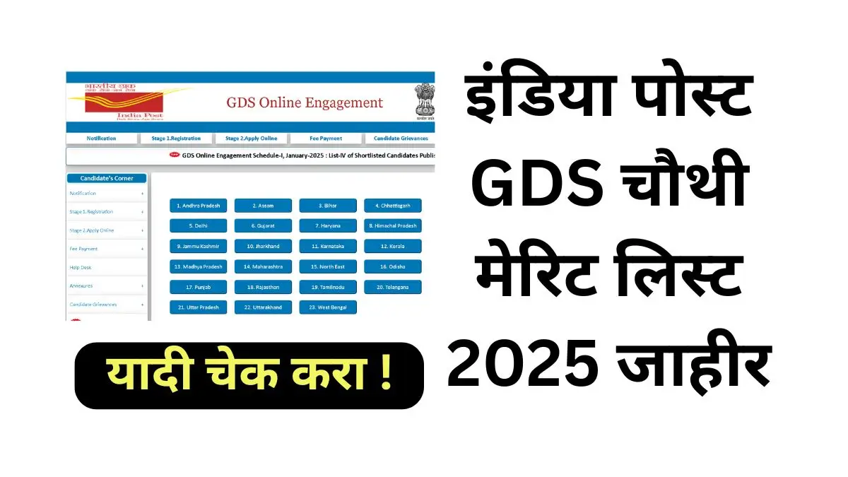 इंडिया पोस्ट GDS चौथी मेरिट लिस्ट 2025 जाहीर – राज्यानुसार पात्र उमेदवारांची यादी पहा – GDS 2025