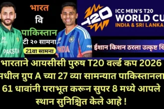 Ind Vs Pak : भारताने आयसीसी पुरुष T20 वर्ल्ड कप 2026 मधील ग्रुप A च्या 27 व्या सामन्यात पाकिस्तानला 61 धावांनी पराभूत करून सुपर 8 मध्ये आपले स्थान सुनिश्चित केले आहे ! समाज माध्यमांवर अभिनंदनाचा वर्षाव !